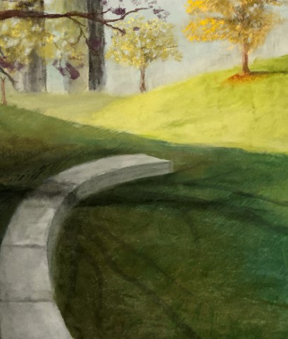 I raised the cement bench and painted in a more accurate perspective.
