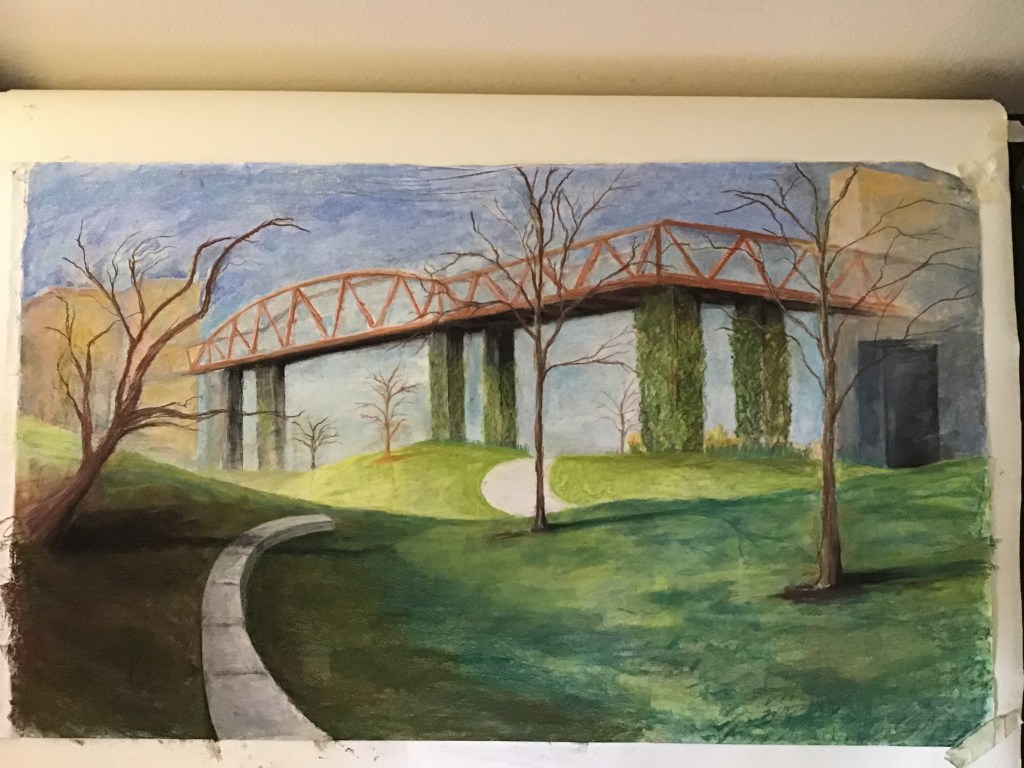 After the initial sketch I took the work home to get into coloring in pastel. The picture you see below is where pastel work stopped and the rest of the work in Procreate began.