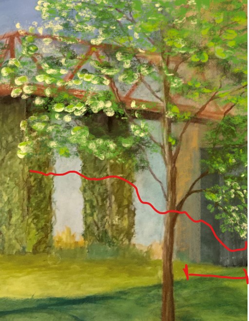 I also improved upon the shadows under this tree, and all other trees for that matter. This was important here just to add some visual interest to that part of the image