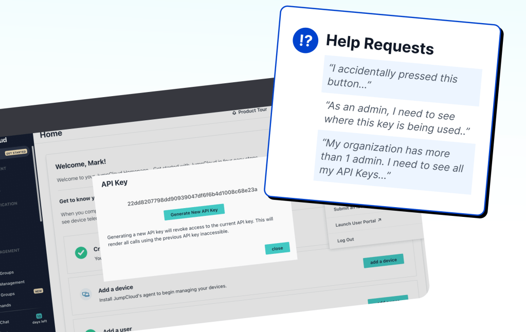 At JumpCloud, an API key is a unique authentication token that allows developers and IT admins to programmatically interact with JumpCloud’s platform. These keys help make work happen without requiring direct user intervention through the UI.