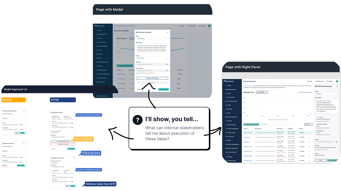 Why? This approach enabled me to ask deeper questions early, avoiding turn arounds later in delivery. By presenting quality visuals of multiple layouts quickly, I showcased what is possible, garnered critical feedback on business priorities, and uncovered UI architecture complexity like scalability and tie-ins to back-end data.