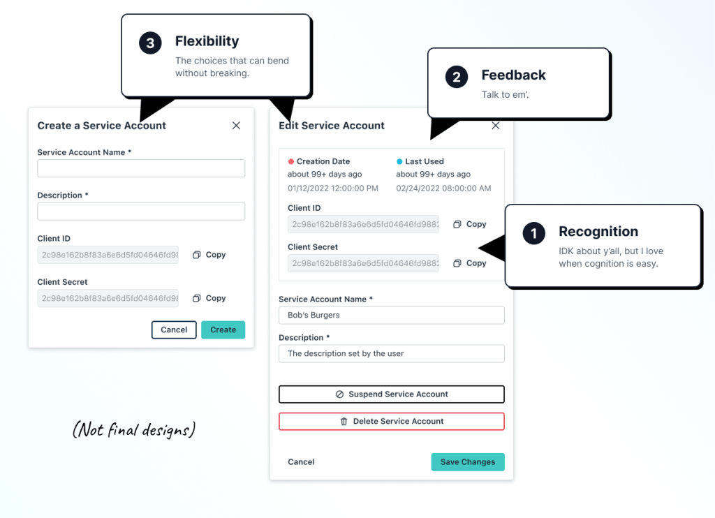 - Recognition: Understanding that most users found API Keys to be pretty technical (and a little scary), we prioritized updating the UI to help cognitive ease.